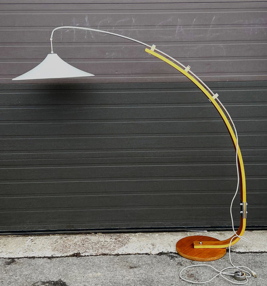 Mid Century Modern Teak Arc Extendable Floor Lamp with UFO Shade