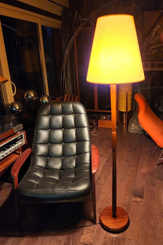 Mid Century Modern Solid Teak Floor Lamp, H 58" (including shade)