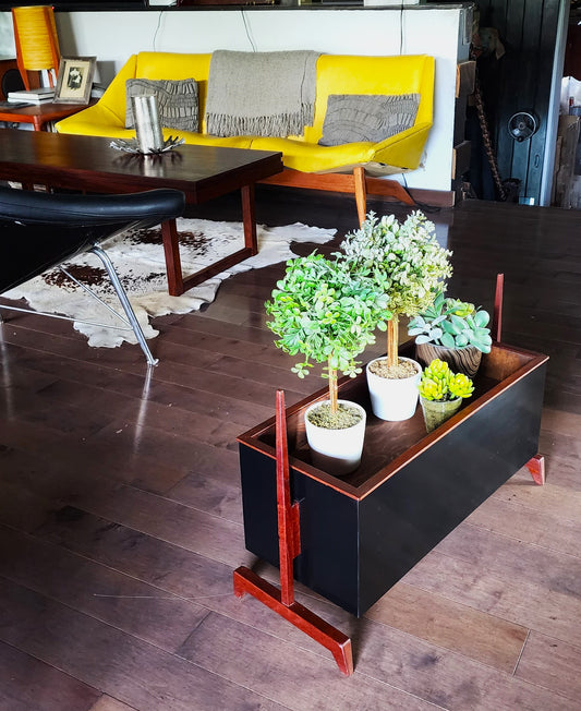 Mid Century Modern Teak & Black Planter Indoor
