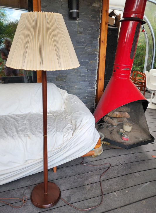 Mid Century Modern Solid Teak Floor Lamp, H 63.5" (including shade)