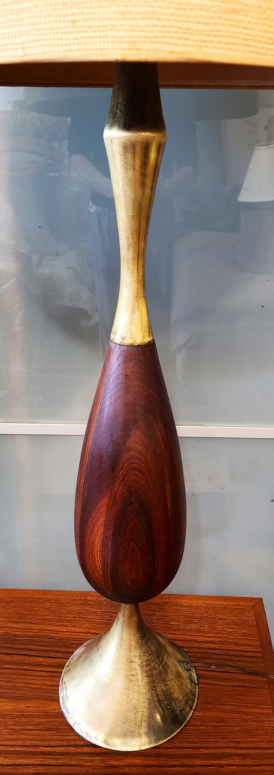 Mid Century Modern Tall Walnut & Brass Lamp by Tony Paul for Westwood 49"
