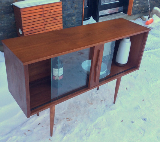 Mid Century Modern Teak Display Buffet China Console Restored 4 ft