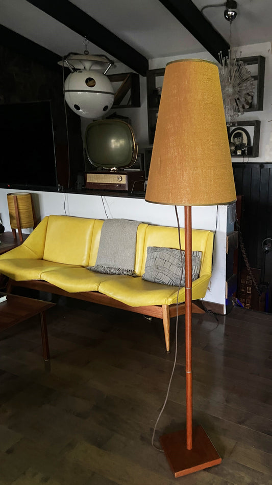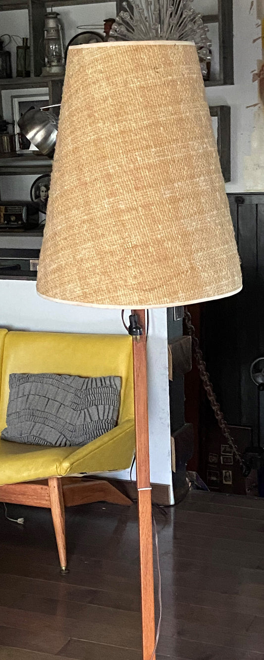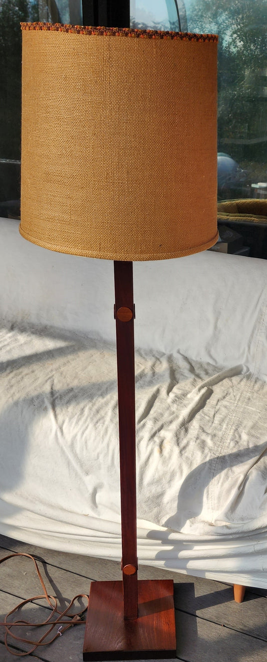 Mid Century Modern Teak Floor Lamp, H 63" (including shade)