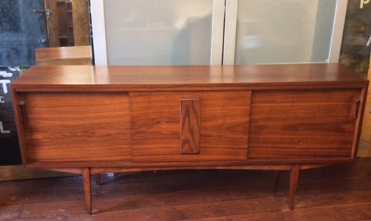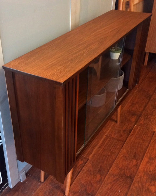 Mid Century Modern Walnut Credenza w Sliding Doors REFINISHED 70β