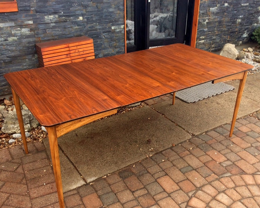 Mid Century Modern Walnut Dining Table Extendable w 2 leaves REFINISHED