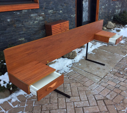 Mid Century Modern Teak Headboard with Floating Drawers Queen REFINISHED