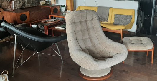 Mid Century Modern Teak Swivel Lounge Chair & Ottoman by R. Huber
