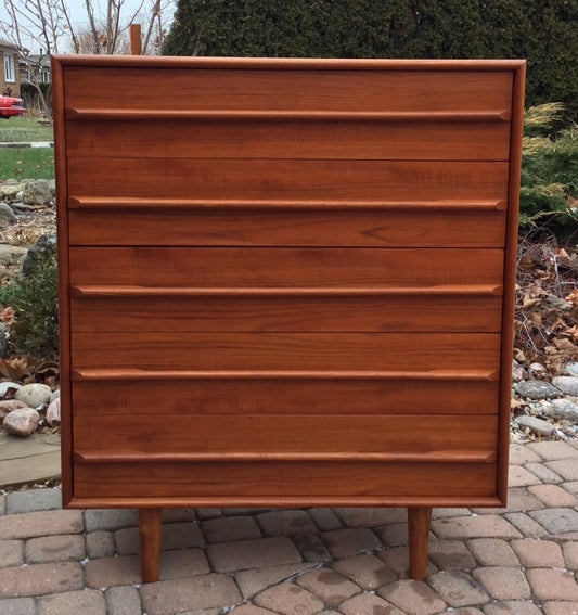 Mid Century Modern Teak Tallboy Dresser 5 Drawers RESTORED