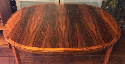 ON HOLD FOR BRITTANY-REFINISHED Danish MCM Rosewood Table Oval no leaves, seats 6