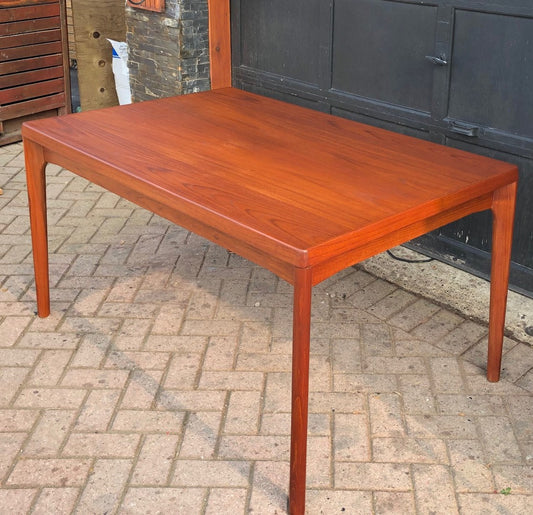 ON HOLD ***REFINISHED Danish MCM Teak Draw Leaf Table by H. Kjaernulf 55"-94", treated for durability
