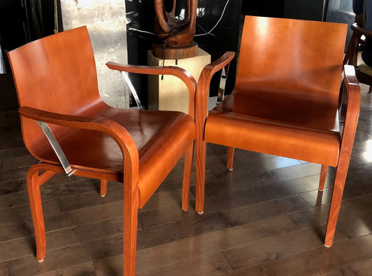 ON HOLD for Stefan & Katharina Set of 4 MCM Franzolini Knoll Studio All Wood Arm Chairs, made in Italy