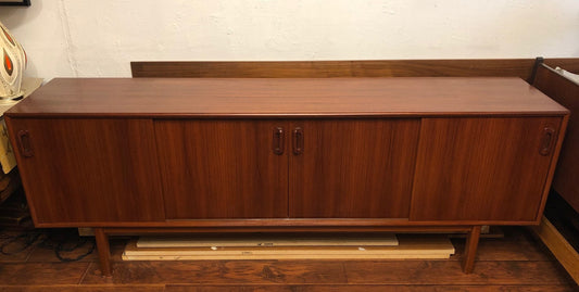 NOT AVAILABLE*****REFINISHED MCM Teak Credenza w 4 sliding doors 86"