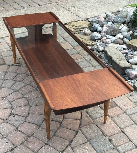 ON HOLD REFINISHED MCM Walnut & Glass 2 Tier Coffee Table 59.5"