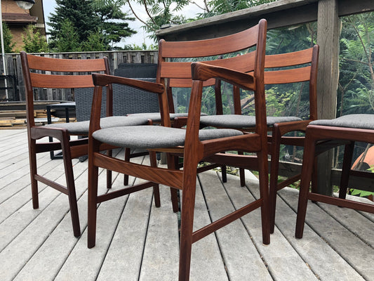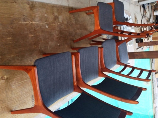 ON HOLD 6 Danish MCM Teak Chairs by Kai Kristiansen REUPHOLSTERED Grey