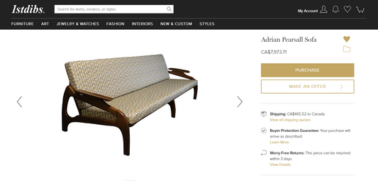 ON HOLD REFINISHED REUPHOLSTERED Adrian Pearsall Sofa Walnut & Grey Velvet 100"