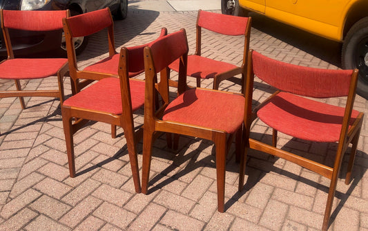 ON HOLD 8 Danish MCM Solid Teak Dining Chairs REUPHOLSTERED like New, each $199