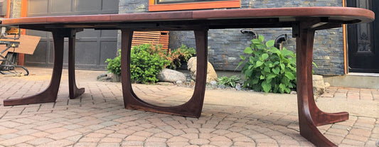 ON HOLD REFINISHED Large Danish MCM Brazilian Rosewood Table w 2 Leaves 70"-117"PERFECT, treated for durability