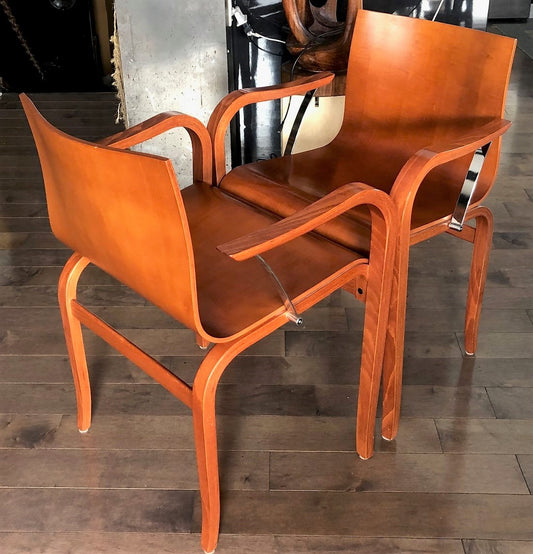 ON HOLD for Stefan and Katharina Set of 2 MCM Franzolini Knoll Studio All Wood Arm Chairs, made in Italy