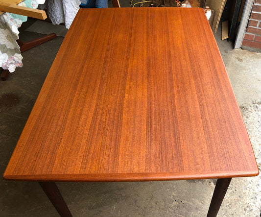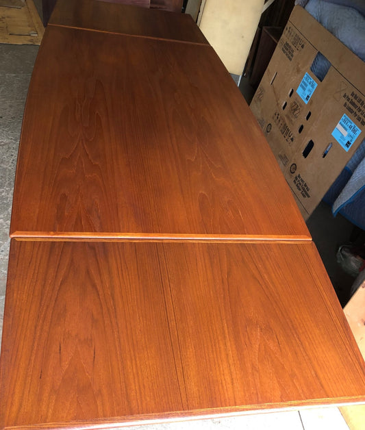 ON HOLD for Jonathan ***REFINISHED Danish MCM Teak Dining Table Surfboard Extendable PERFECT - 5 ft-100", treated for durability