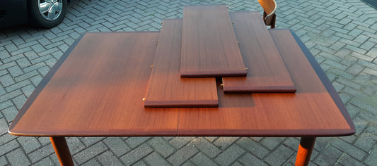 On hold for L. ***REFINISHED MCM Teak Dining Table Extendable w 3 leaves PERFECT 51" - 85", by Alf Aarseth, Norway