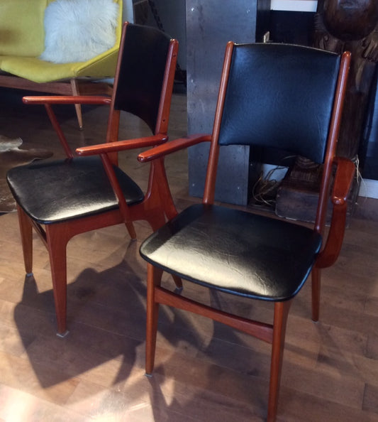 ON HOLD for S.T. 2 Danish MCM Teak Dining Armchairs REFINISHED will be custom REUPHOLSTERED for you, $350 each