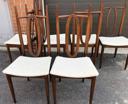 ON HOLD*** 6 Mid Century Modern Teak Chairs RESTORED will be REUPHOLSTERED, perfect, $249 per chair