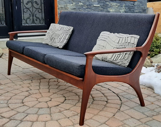 On hold***REFINISHED MCM Solid Teak 3-Seater Lounge Sofa with charcoal wool upholstery