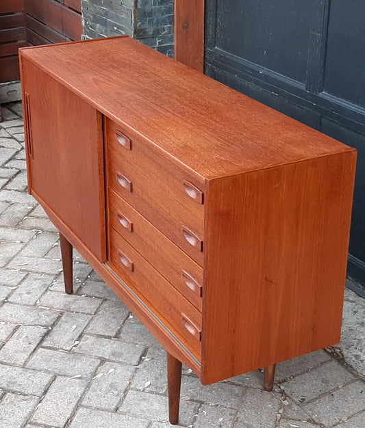 REFINISHED Compact MCM Teak Sideboard with Sliding Door & Drawers, 4 ft, perfect