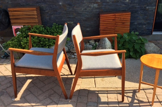 Pair of MCM Teak or Walnut Arm Lounge Chairs for Living or Dining Room, $249 each