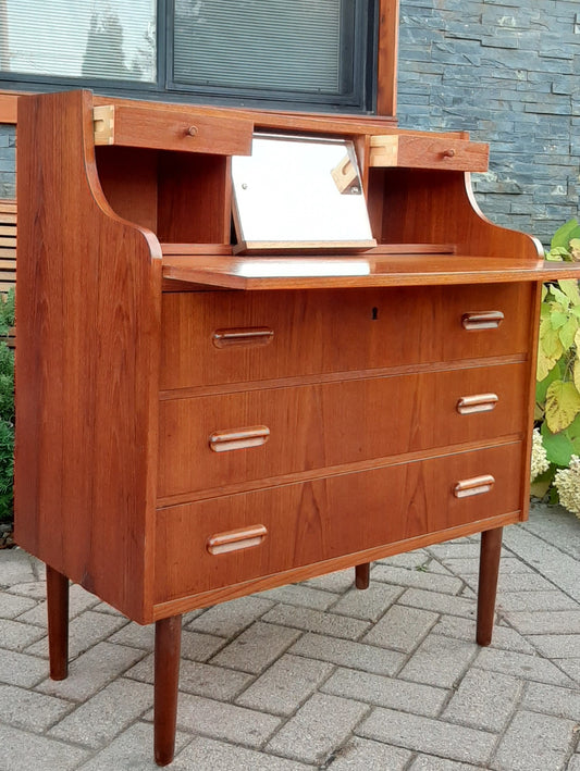 REFINISHED Danish MCM Teak Secretary Desk or Vanity 33.5"