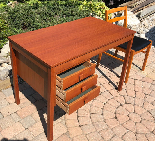 REFINISHED Danish MCM Teak Desk Freestanding & FREE Chair