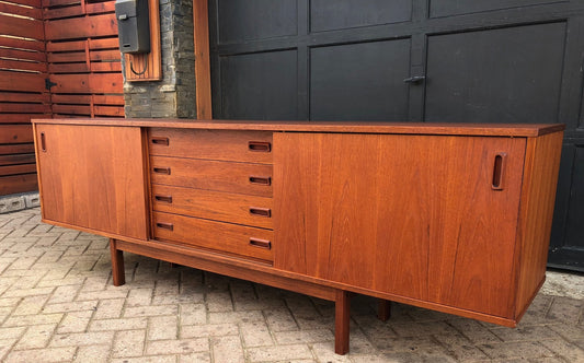 REFINISHED Danish MCM Teak Sideboard with 4 Sliding Doors 6 ft