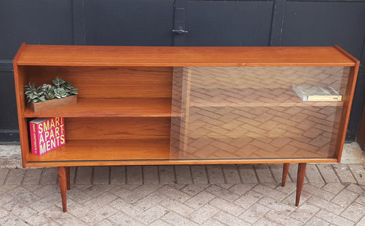 REFINISHED Danish MCM Teak Display China TV Console Narrow 61.5"