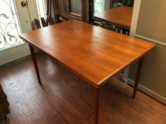 REFINISHED Danish MCM Teak Draw Leaf Table Compact 48"-85"