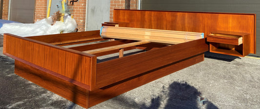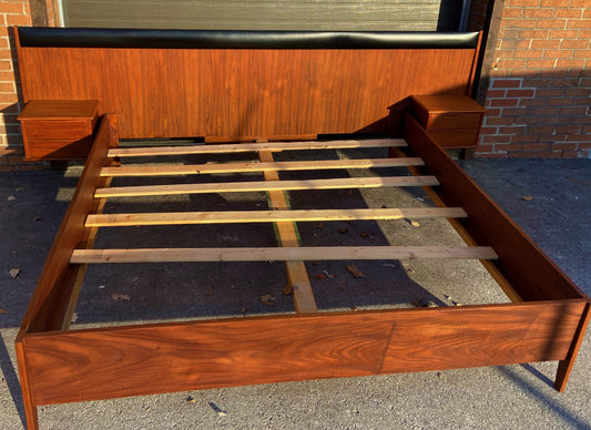REFINISHED Danish MCM Teak Bed King w Floating Nightstands, PERFECT