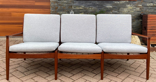 REFINISHED Danish MCM Teak 3-Seater Sofa by Grete Jalk, NEW CUSHIONS IN MAHARAM, Perfect