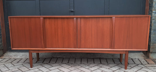 REFINISHED Danish MCM Teak Credenza w 4 sliding doors 77” narrow, PERFECT