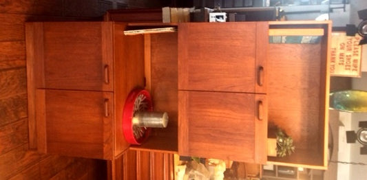 REFINISHED Danish MCM Tall Cabinet Pantry Linen Media 32" x H 70.75" (2 parts)