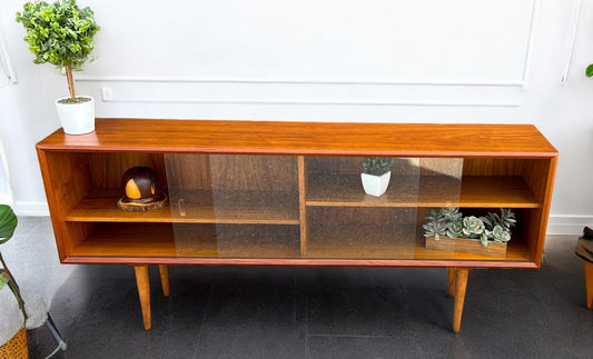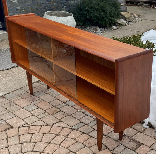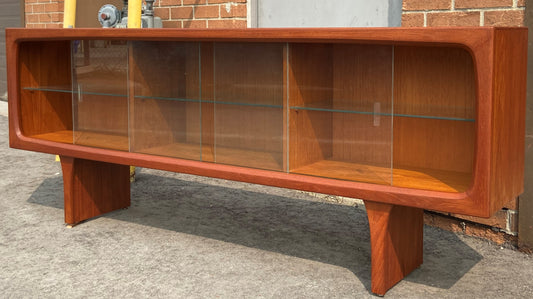 REFINISHED Danish MCM Teak Display by Faarup w Finished Back 59"