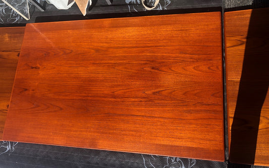 REFINISHED Danish MCM Teak Draw Leaf Table Surfboard shape, PERFECT, 48.5" - 84.5"