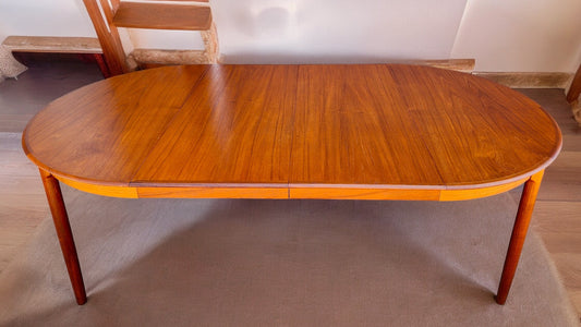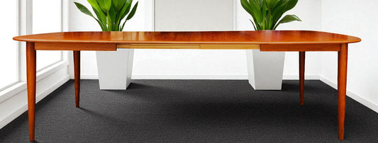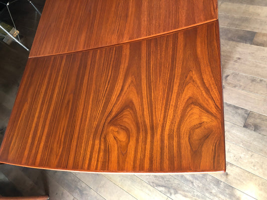 REFINISHED Danish MCM Teak Table Surfboard Extendable by H Kjaernulf for Vejle, perfect