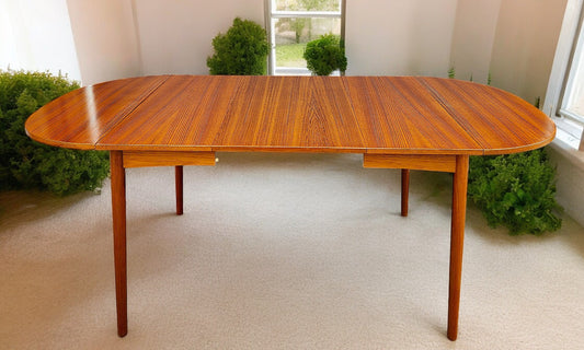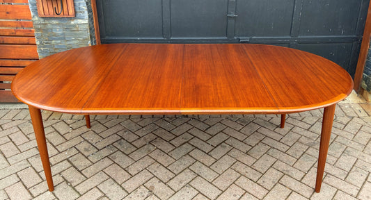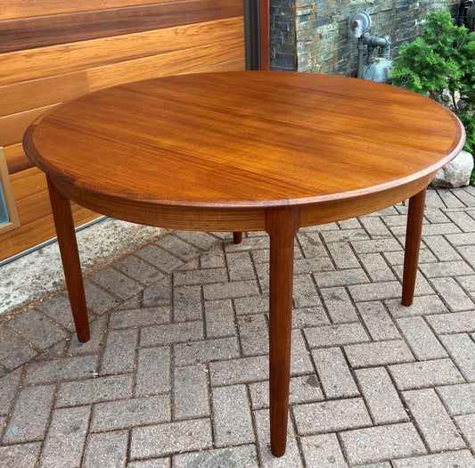 REFINISHED Danish MCM Teak Table Round to Oval w 2 leaves PERFECT 47" - 86" PERFECT