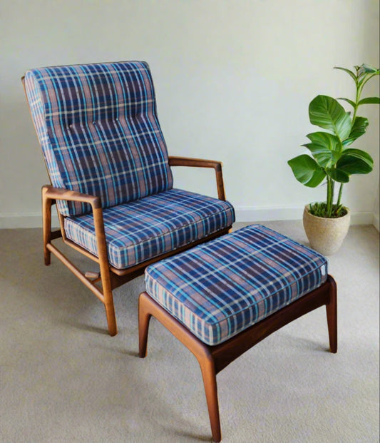 REFINISHED Danish MCM Walnut Lounge Chair Recliner & Ottoman by Ib Kofod Larsen for Selig