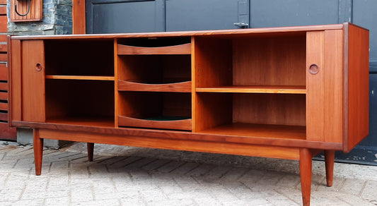 REFINISHED Danish MCM Teak TV Media Console by Clausen & Son w Finished Back 73"