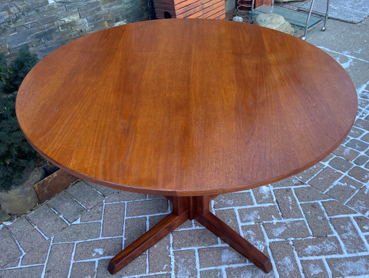 REFINISHED Danish MCM Teak Table Round w Pedestal Legs 4ft