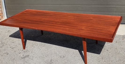 REFINISHED Danish Mid Century Modern Selig Teak Coffee Table Large w Raised Edges