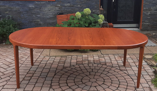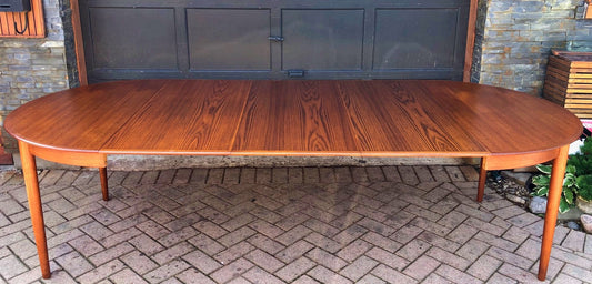REFINISHED Danish MCM Teak Table Round to Oval w 3 Leaves by DYRLUND, PERFECT - 47-107", treated for durability