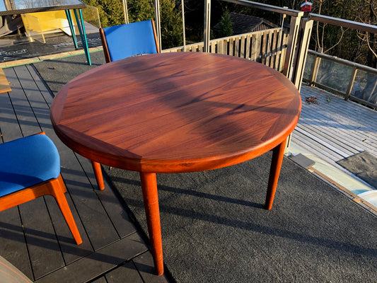 REFINISHED Danish MCM Teak Table Round w 2 leaves by C.J. Rosengaarden 47"-86.5"
