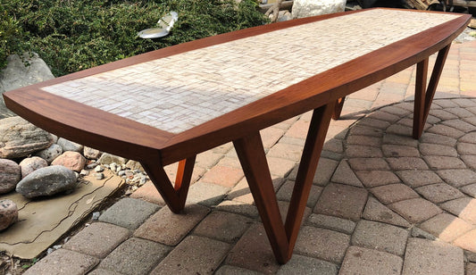 REFINISHED Danish MCM walnut coffee table with tile inlay 60"