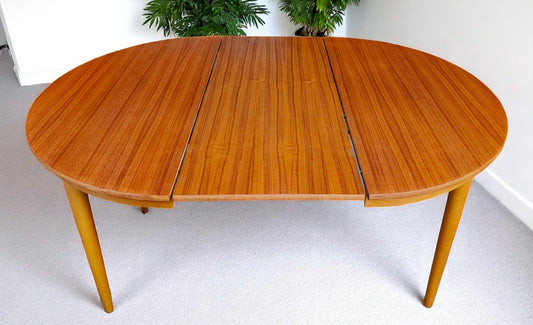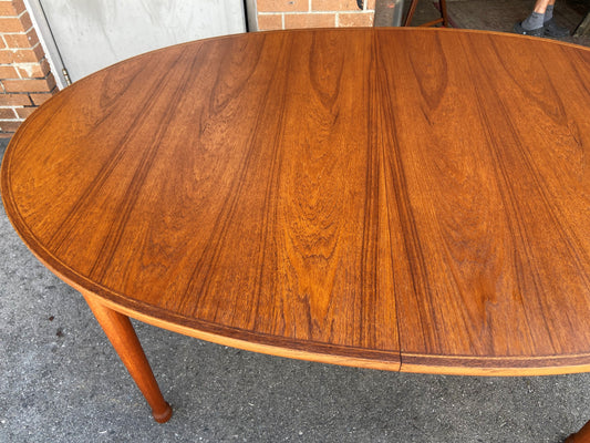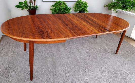 REFINISHED Danish Mid Century Modern Teak Table Oval w 2 leaves 60"-100"